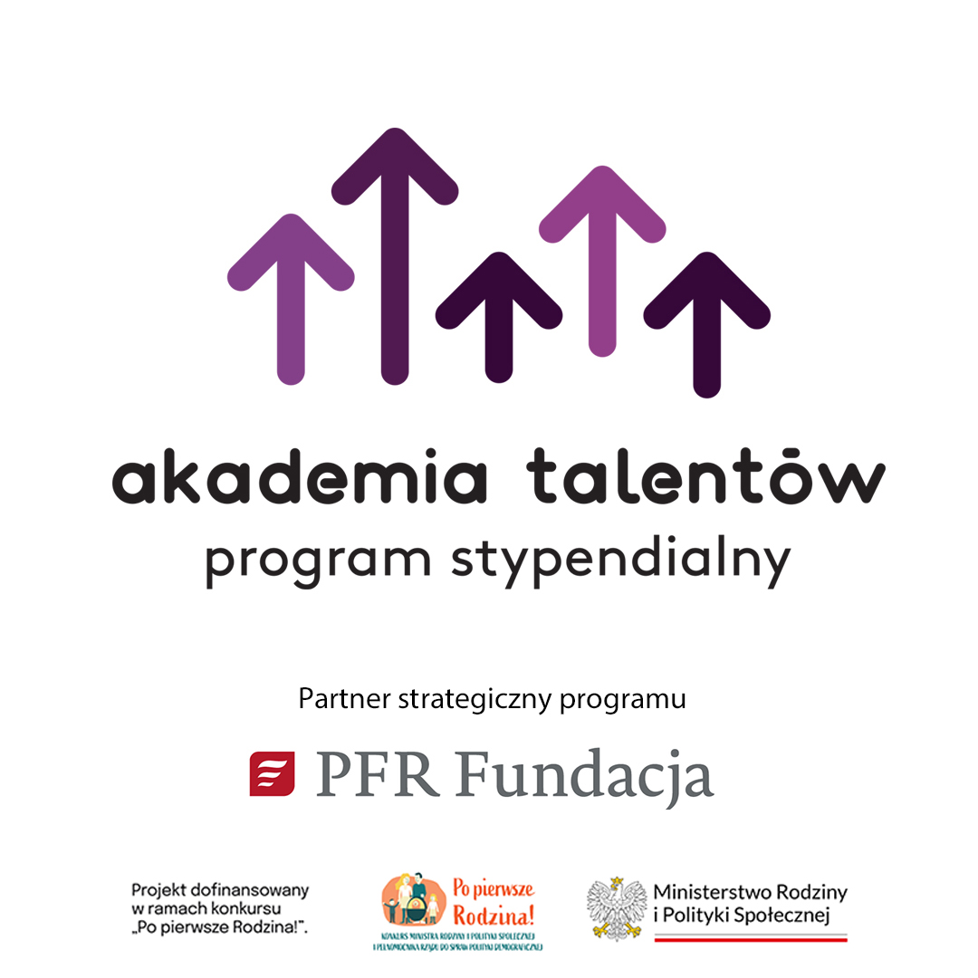 Realizacja programu stypendialnego jest możliwa dzięki wsparciu partnera strategicznego - Fundacji PFR. Projekt Letniej Akademii Talentów jest dofinansowany w ramach konkursu „Po pierwsze Rodzina!”.