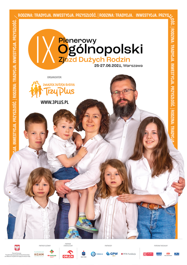 Plenerowy IX Ogólnopolski Zjazd Dużych Rodzin organizowany przez Związek Dużych Rodzin „Trzy Plus” został objęty Patronatem Honorowym Prezydenta Rzeczypospolitej Polskiej Andrzeja Dudy oraz Małżonki Prezydenta Pani Agaty Kornhauser-Dudy. Partnerem głównym wydarzenia jest Fundacja KGHM oraz Grupa Eurocash S.A. Partnerem strategicznym wydarzenia jest PKN ORLEN S.A. Partnerzy: PKO Bank Polski, Fundacja PZU, Fundacja PFR, Giełda Papierów Wartościowych S.A. Partnerzy medialni: Polskie Radio S.A., TVP3 Warszawa, Polska Agencja Prasowa, Katolicka Agencja Informacyjna.