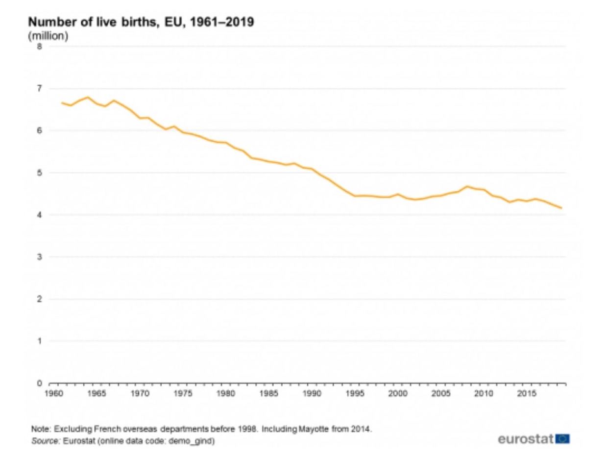 Przyglądanie się danym statystycznym – statystykom urodzeń i zgonów wydaje się od wielu lat jak najbardziej zasadnym zajęciem dla naukowców, dziennikarzy, komentatorów, czy specjalistów inżynierii społecznej. Znanym faktem jest, że od wielu lat w Unii Europejskiej rodzi się coraz mniej dzieci. Patrząc na dane statystyczne, widzimy, że ostatnie lata nie przyniosły przełomu w tej kwestii. W 2019 r. w całej UE urodziło się jedynie 4,2 mln dzieci.