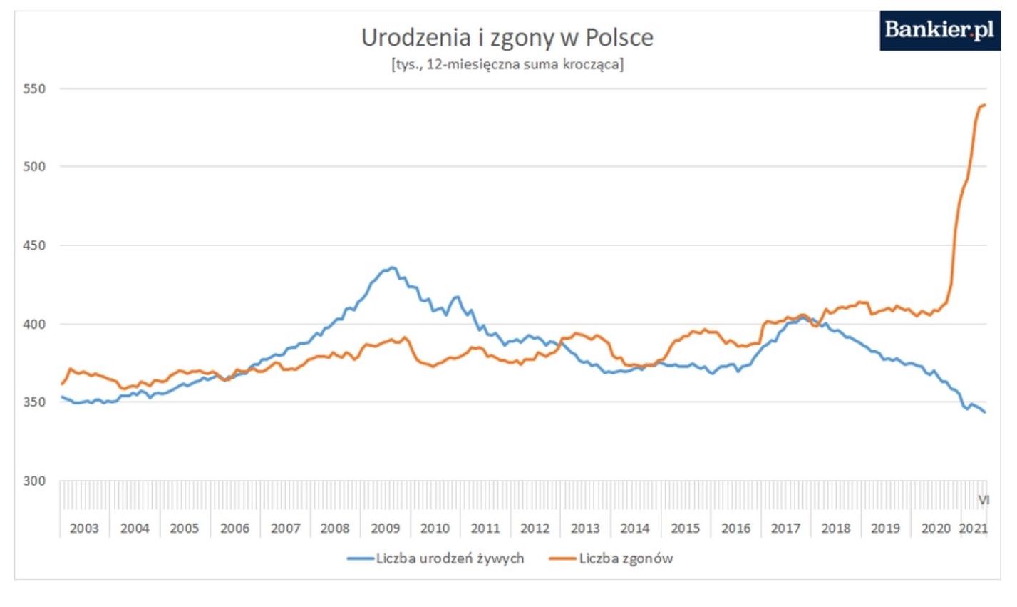 Czasy pandemii jeszcze bardziej zmniejszyły liczbę urodzeń- w czasie lipiec 2020-czerwiec 2021 w Polsce urodziło się niespełna 344 tys. dzieci, co uważa się za najniższą liczbę urodzeń od lat 50 tych XX wieku. W całym 2020 roku mieliśmy 355 tys. urodzeń. Snucie analogii do czasów stanu wojennego było nietrafione- czasy pandemii okazały się być wybitne niekorzystne dla decyzji o zakładaniu rodziny, czy jej powiększania.