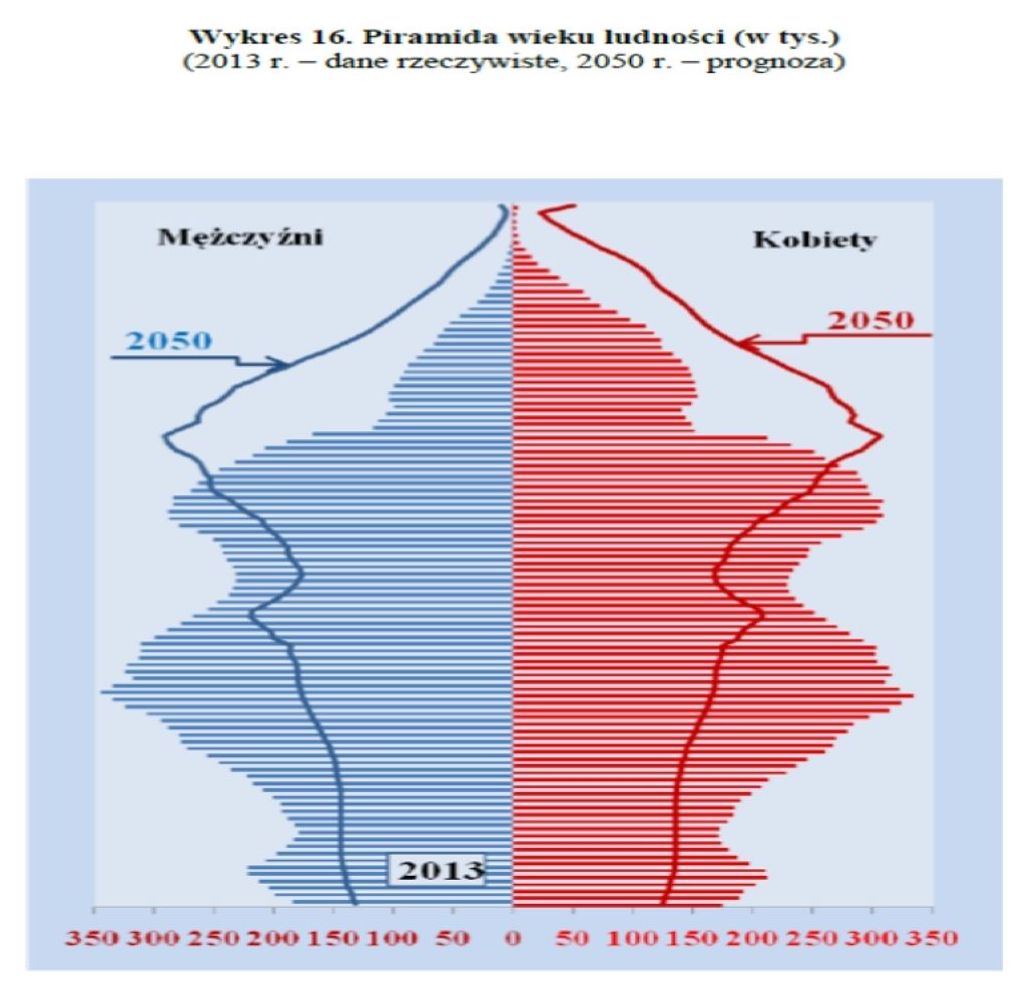 W 2050 roku- połowa ludności ma osiągnąć 50 i więcej lat. SGH szacuje, że połowa emerytów w 2040 roku otrzyma najniższe świadczenia. Przewiduje się, że wzrośnie presja na podniesienie świadczeń emerytalnych, co będzie miało negatywny wpływ na saldo finansów publicznych. Oczywiste jest, że należy również się spodziewać problemów z wydajnością systemów emerytalnych i opieki zdrowotnej.
