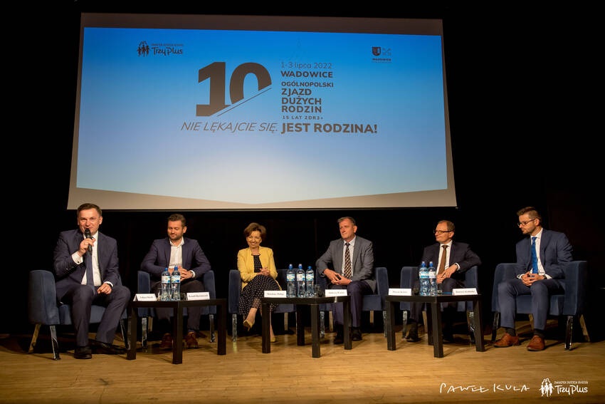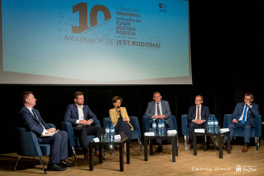 W sobotę, 2 lipca 2022 r., w Wadowickim Centrum Kultury w ramach X Zjazdu Dużych Rodzin odbył się panel społeczno-ekonomiczny pt. „Polityka rodzinna - co udało się osiągnąć i co dalej?” z udziałem Minister Pracy i Polityki Społecznej Marleny Maląg, Ministra Sportu i Turystyki Kamila Bortniczuka, przewodniczącego Rady do spraw Rodziny, Edukacji i Wychowania przy Prezydencie RP prof. Andrzeja Waśko, eksperta Związku Dużych Rodzin „Trzy Plus” prof. Marka Kośnego z Uniwersytetu Ekonomicznego we Wrocławiu oraz Burmistrza Wadowic Bartosza Kalińskiego. Dyskusję poprowadził prof. Łukasz Hardt z Uniwersytetu Warszawskiego.