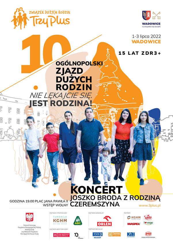 Aż 170 rodzin z 69 miast, 80 wolontariuszy, 35 warsztatów, 11000 butelek z wodą i napojami, 4 kilogramowy tort, 600 kremówek, 3640 wydanych posiłków, 3750 pierogów, 170000 chrupków kukurydzianych, 50 leżaków, 3 kontuzje sportowe - to podsumowanie X Zjazdu Dużych Rodzin w Wadowicach, który odbył się w dniach 1-3 lipca 2022 r. pod hasłem „Nie lękajcie się. Jest rodzina!”. Rodziny zjechały do papieskiego miasta, aby wspólnie świętować i dzielić się urokami swojego rodzicielstwa. Wśród gości były także rodziny ukraińskie.