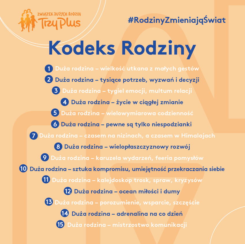 Kodeks Rodziny dostępny jest na naszym www.facebook.com/ZwiązekDużychRodzin3Plus