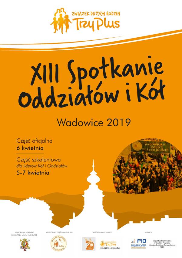 PLAN SPOTKANIA ODDZIAŁÓW  I KÓŁ Związku Dużych Rodzin Trzy Plus - Wadowice, 6 kwietnia 2019 r.