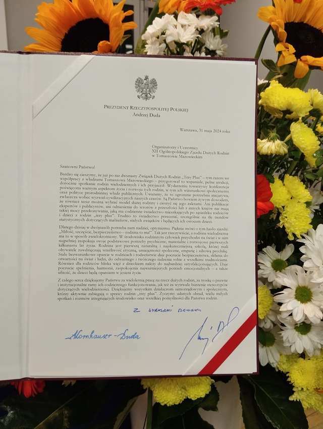 W dniach 31 maja – 2 czerwca 2024 r. w Tomaszowie Mazowieckim odbył się XII Ogólnopolski Zjazd Dużych Rodzin, którego organizatorami byli Związek Dużych Rodzin „Trzy Plus” oraz Miasto Tomaszów Mazowiecki. W wydarzeniu uczestniczyło 120 rodzin z trojgiem i więcej dzieci, co dało około 700 osób z całej Polski.
