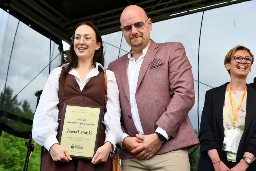 Powiat Miński – pierwszy powiat z certyfyfikatem „Samorząd Przyjazny Rodzinom" Wicestarosta Urszula Pacyga oraz Dyrektor Biura Promocji Michał Siemiński