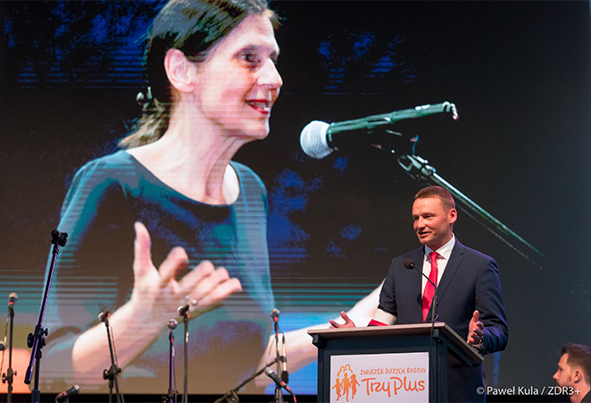 Radosław Waszkiewicz, obecny Prezes Związku Dużych Rodzin Trzy Plus, wraz z nowowybranym Zarządem wręczyli Joannie Krupskiej statuetkę i dyplom Przyjaciela Dużych Rodzin.