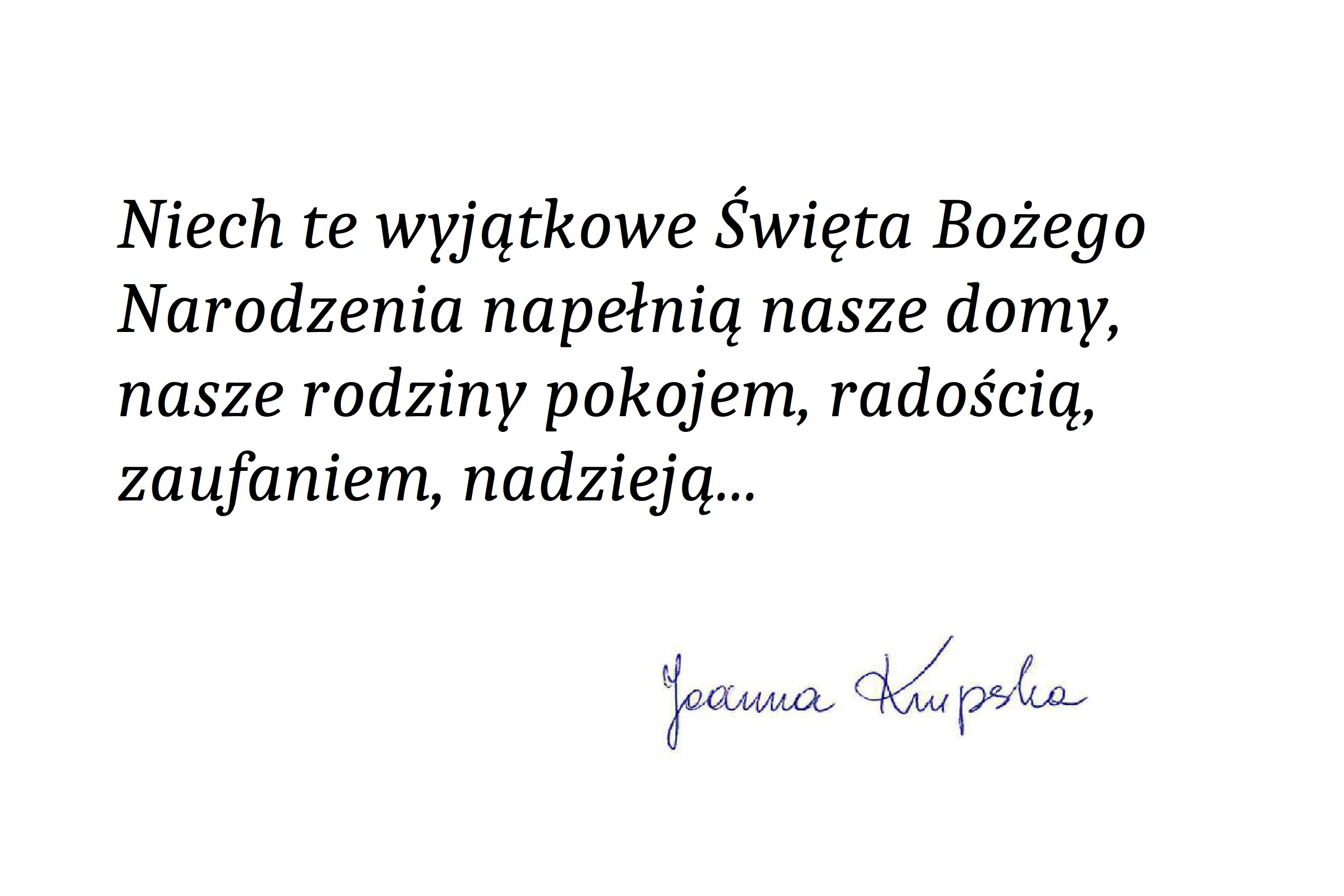 I takie mamy marzenie, aby w Waszych, naszych, dużych i małych Rodzinach nie zabrakło nie tylko w te święta Darów z Nieba i wzajemnej miłości rodzinnej i małżeńskiej, która pozwala zachować zawsze pogodę ducha, niezależnie od warunków zewnętrznych.